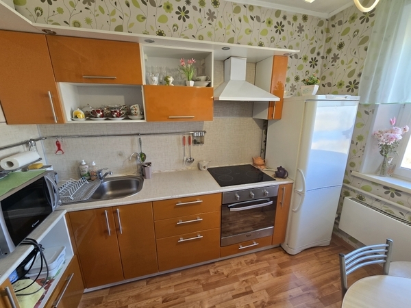 Продается уютная однокомнатная квартира с косметическим ремонтом, мебелью и техникой площадью 32 м с большой лоджией. Год постройки дома — 2012. Просторная комната площадью 12,5 м с выходом на застекленную лоджию, откуда открывается вид на город. Во дворе есть детская площадка, а также открытая парковка, через дом детский сад.